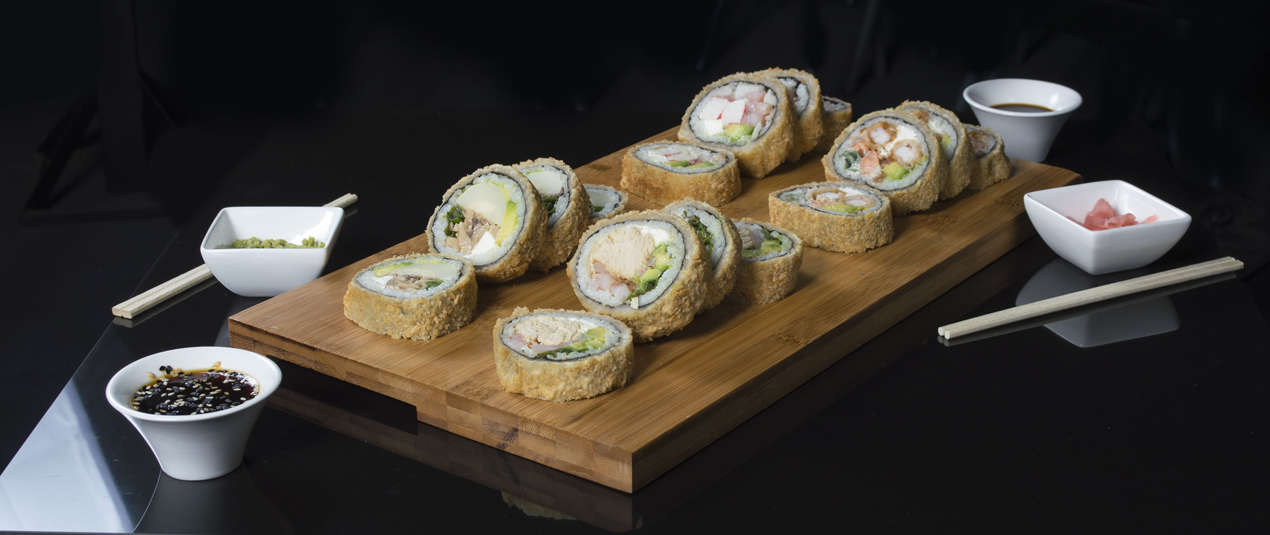 Acompañamientos Chees Ball$ 2.500 Korobes$ 2.500 Gyozas Eat Sushi$ 2.500 Camarones Furay$ 2.500 Salsa Acevichada 2 Oz.$ 600 Arrollados Primavera$ 3.000 Arrollados Jamón Queso$ 3.000 Hosomaki$ 2.000
